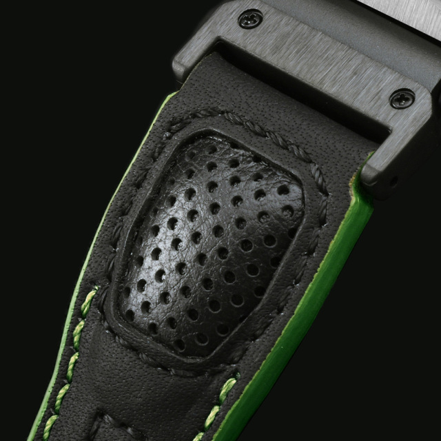 | Band | Punching calf leather accented with green stitching | ||