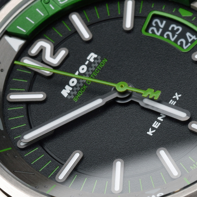 視認性にこだわったダイヤルデザイン瞬時の視線移動で時刻を確認できるよう、12時位置のみアラビア数字インデックスを配置。 強蓄光のインデックスと針により、トンネルや夜間走行でも確実な視認性を確保。 |
